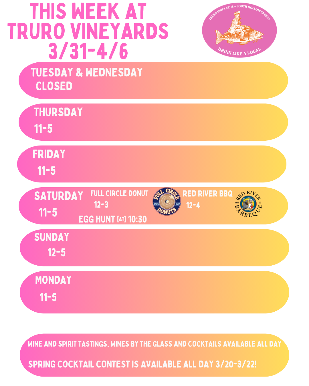 Starting April 16th– Open 7 days